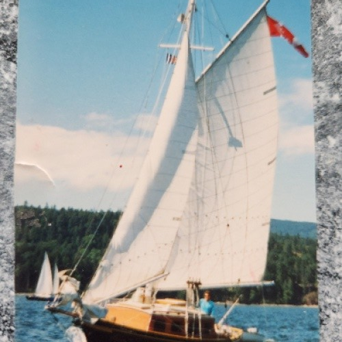Gaff rigged Friendship Sloop. Sailed her around in the late twentieth century. Jakartra had five plus tons of soul.